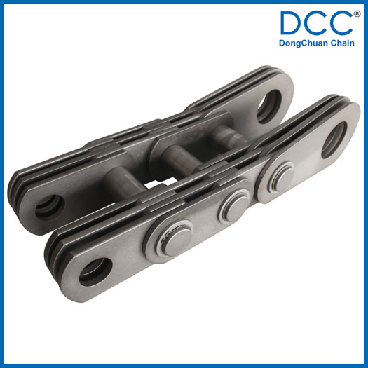 板式輸送鏈主要用于拉曳,鏈條為板銷結(jié)構(gòu),有單排和多排,可以根據(jù)不同的載荷選用不同的鏈條排數(shù),鏈條具有好的抗疲勞性能,可以頻繁的承載、卸載。為了滿足鏈條的使用工況,我們對鏈條的零件采用了較高硬度的熱處理要求,并對鏈板孔采用鋼球擠孔的工藝,使鏈板孔周圍形成一圈預(yù)應(yīng)力,在鏈條使用時提高鏈條的抗疲勞性。